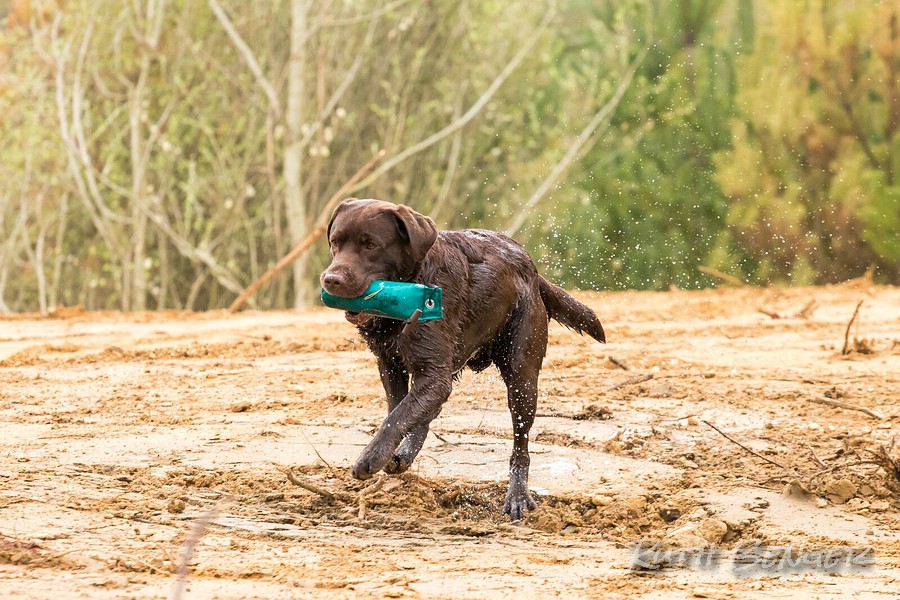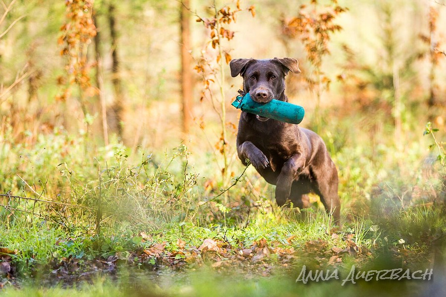 Es ist der letzte WT für Enya in der Anfängerklasse und es gibt eine sehr sehr unglückliche Null als sich das Dummy auf dem Rückweg mit dem Griff im Gestrüpp verfängt. Dass Enya das Dummy hier verliert wird nicht negativ bewertet, aber sie nimmt es in ihrer Hektik schlecht wieder auf und verliert es deshalb, nur einen Meter vor mir, erneut. Und DAS hätte nicht passieren dürfen...mit Null sind es 69/100 Punkte, so schade !